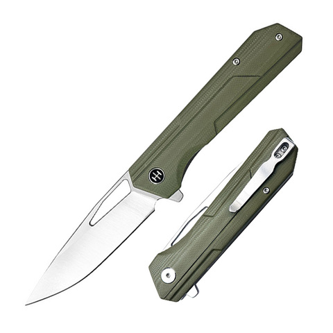 มีดพับมีที่ทุบกระจกสำหรับล่าสัตว์กลางแจ้งสีเขียวด้าม G10ใบมีด3Cr13ปรับได้ตามต้องการ
